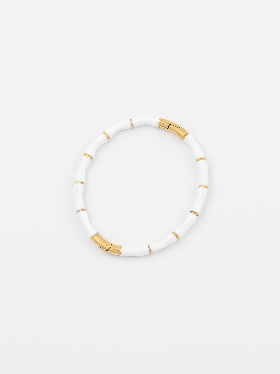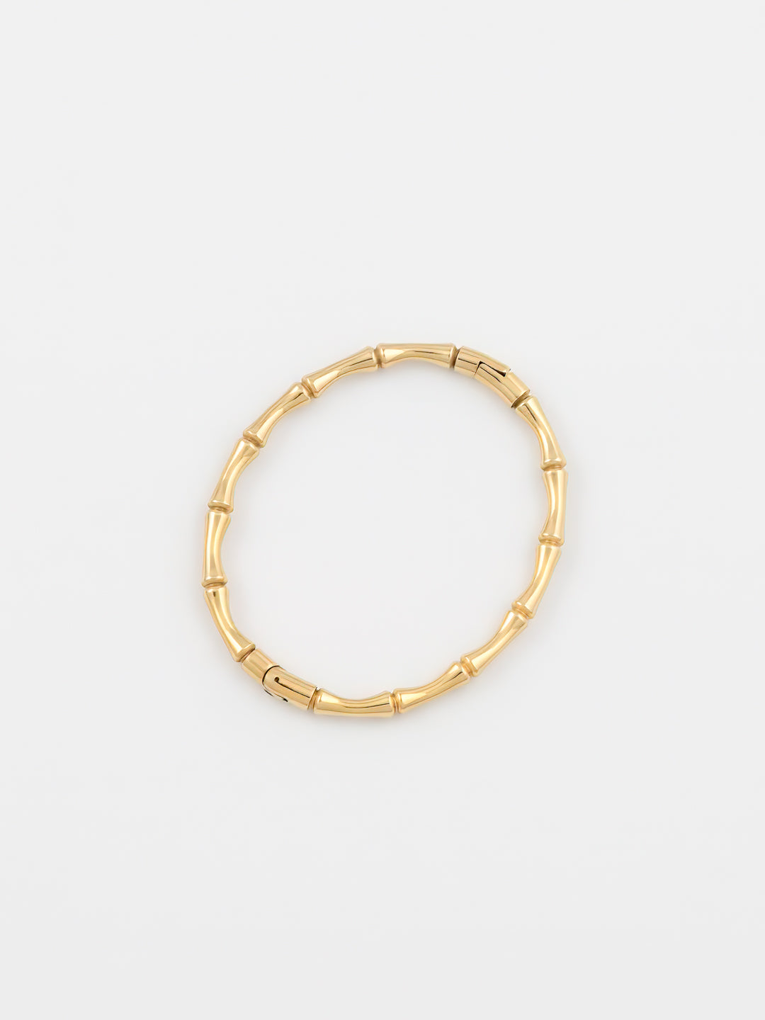 Embrace the serenity of nature with Grove, a bracelet inspired by the tranquil beauty of bamboo. Crafted with polished segments, it wraps the wrist in a continuous flow, reflecting light with every movement. Grove is a timeless piece that complements any style, adding a touch of understated elegance and natural charm to your everyday look.