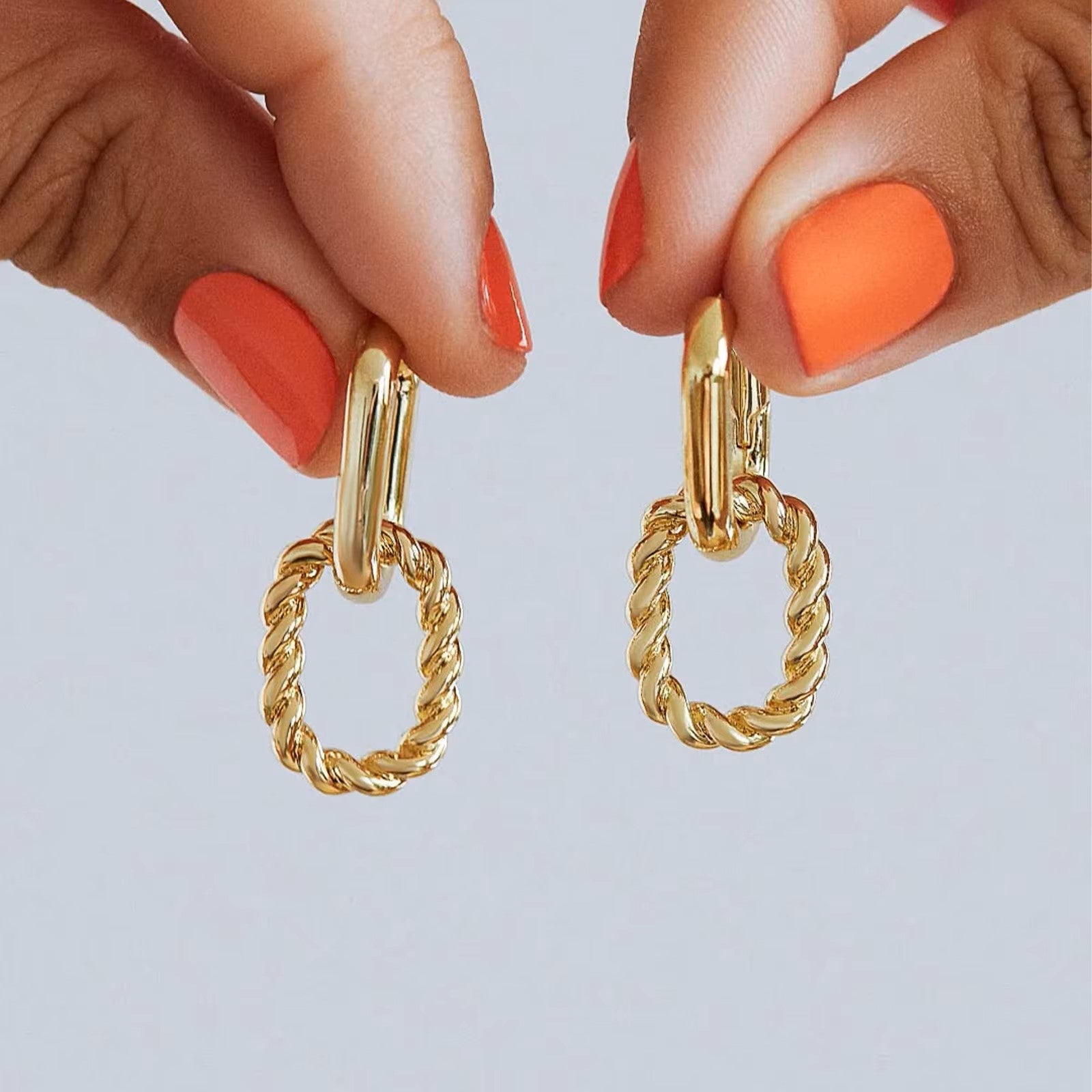 Add some playful texture to your ear stack with Maya Double hoop earrings. These hanging hoops, feature two differently patterned rings for a unique look. With a high-polish finish, these earrings will elevate any outfit. Mix and match with simple studs for a well-balanced look.