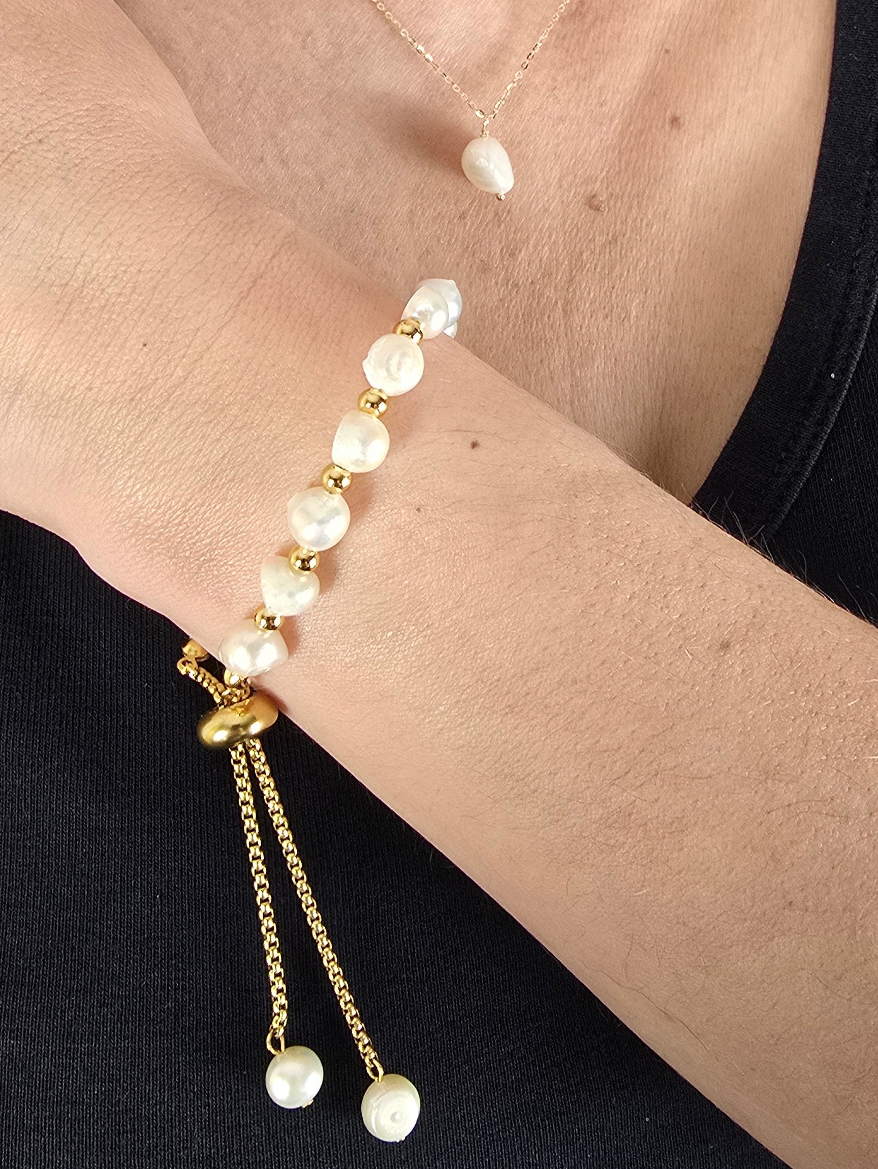- Material - High quality stainless steel with 14k gold plating and freshwater pearls