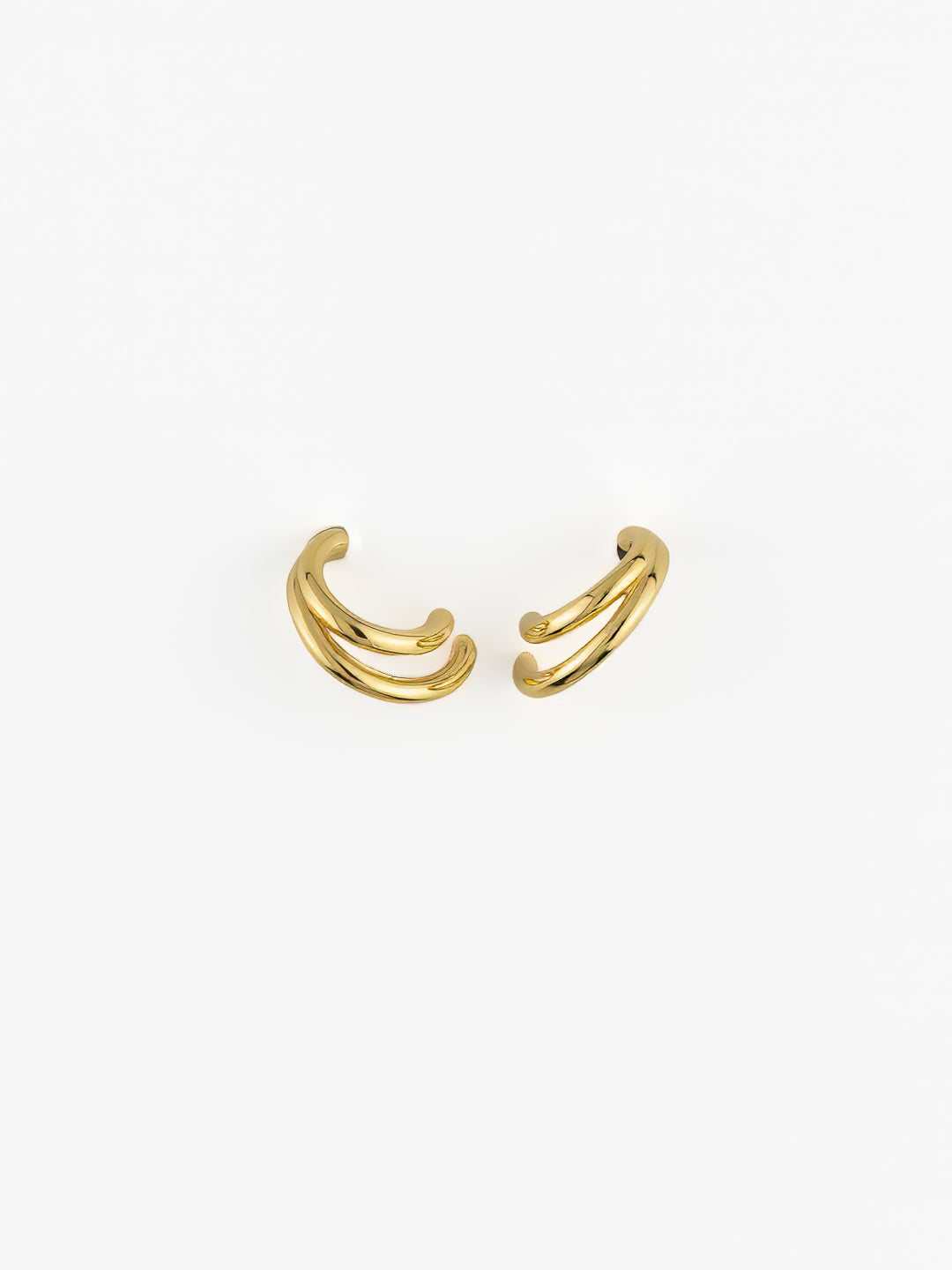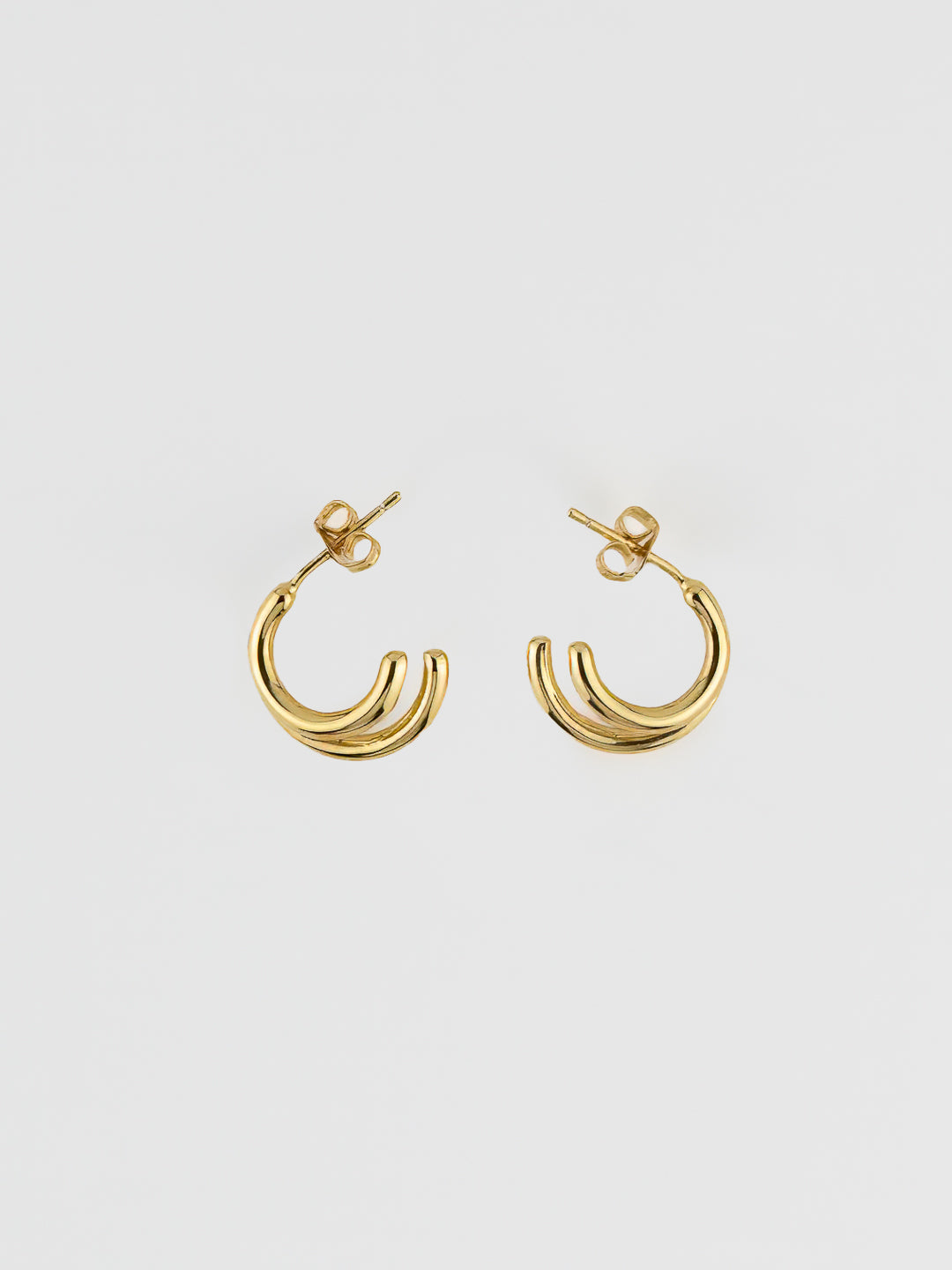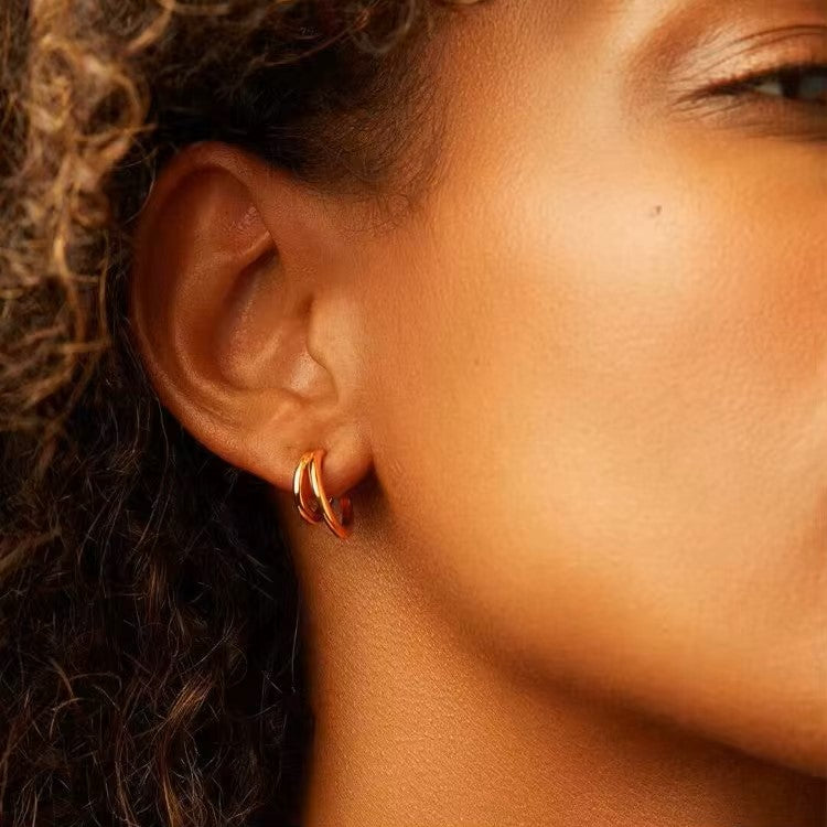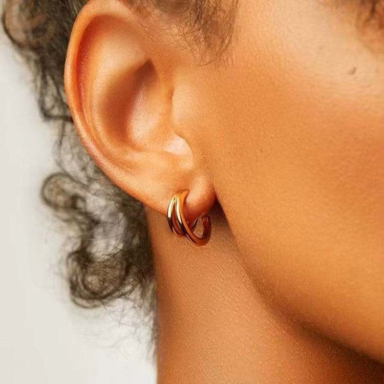 Achieve a stylish double-stack look effortlessly with these sleek gold hoop earrings. Expertly crafted, they offer a versatile and modern accessory that complements any occasion, from casual outings to special events.