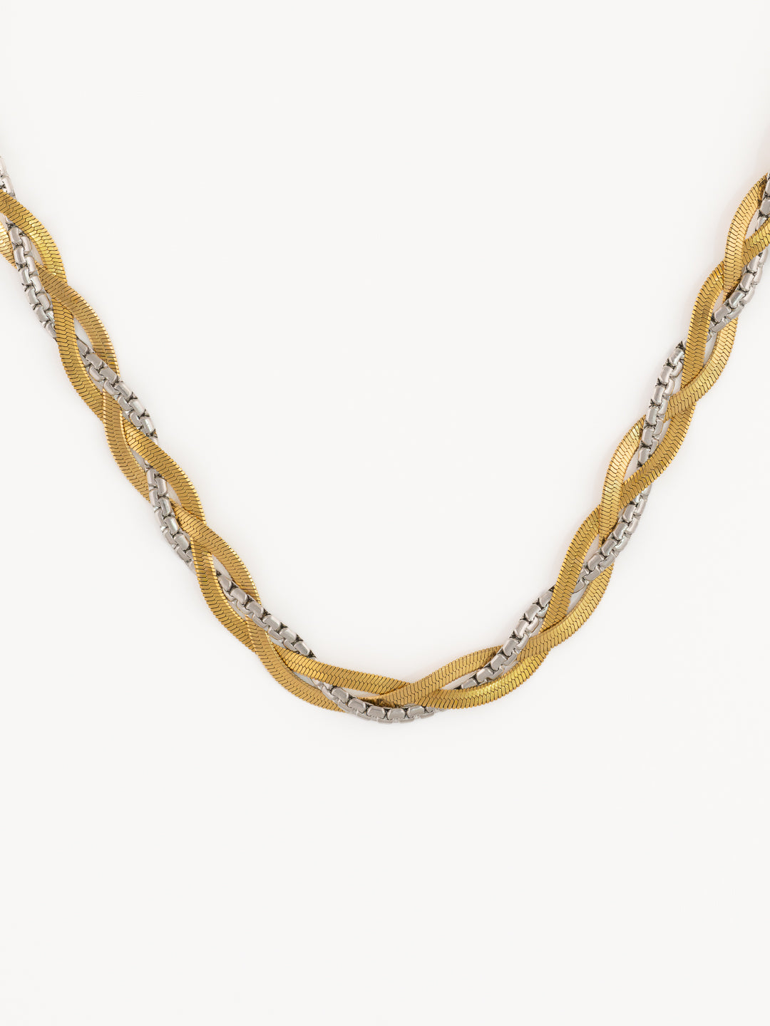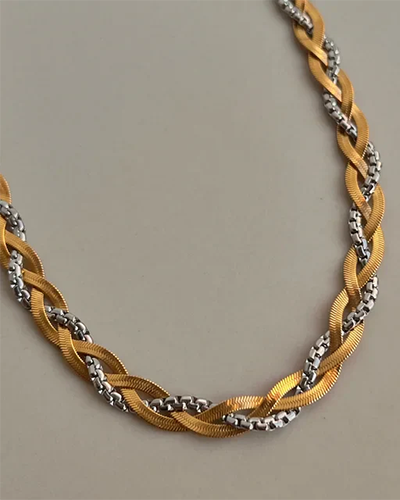 An exquisite celebration of minimalism and sophistication, the Luxe The Twilight Twist necklace embodies timeless elegance and modern sophistication. Featuring intricately braided strands, this piece creates a captivating interplay of light and texture. The seamless blend of tones evokes the serene transition of day to night, making it a versatile accessory for both daytime charm and evening glamour. The Twilight Twist necklace is a statement of refined style, perfect for elevating any ensemble.