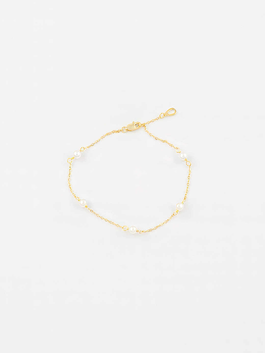 Reimagine the classic pearl station bracelet with this contemporary twist. Crafted with a delicate gold chain and adorned with five lustrous freshwater pearls, this piece is a must-have for any jewelry collection.